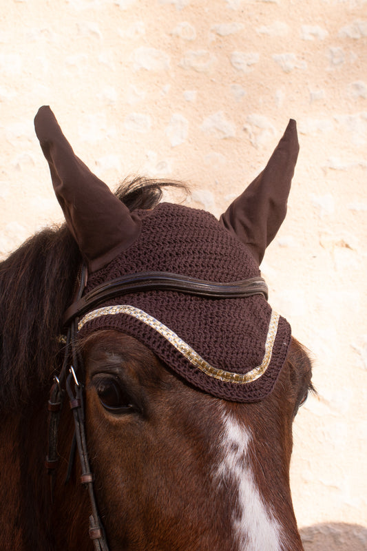Bonnet brun en coton bio et oreilles toutes douces