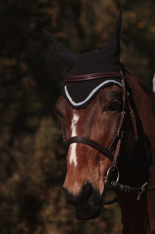 Bonnet noir en coton bio et oreilles toutes douces, tricoté à la main