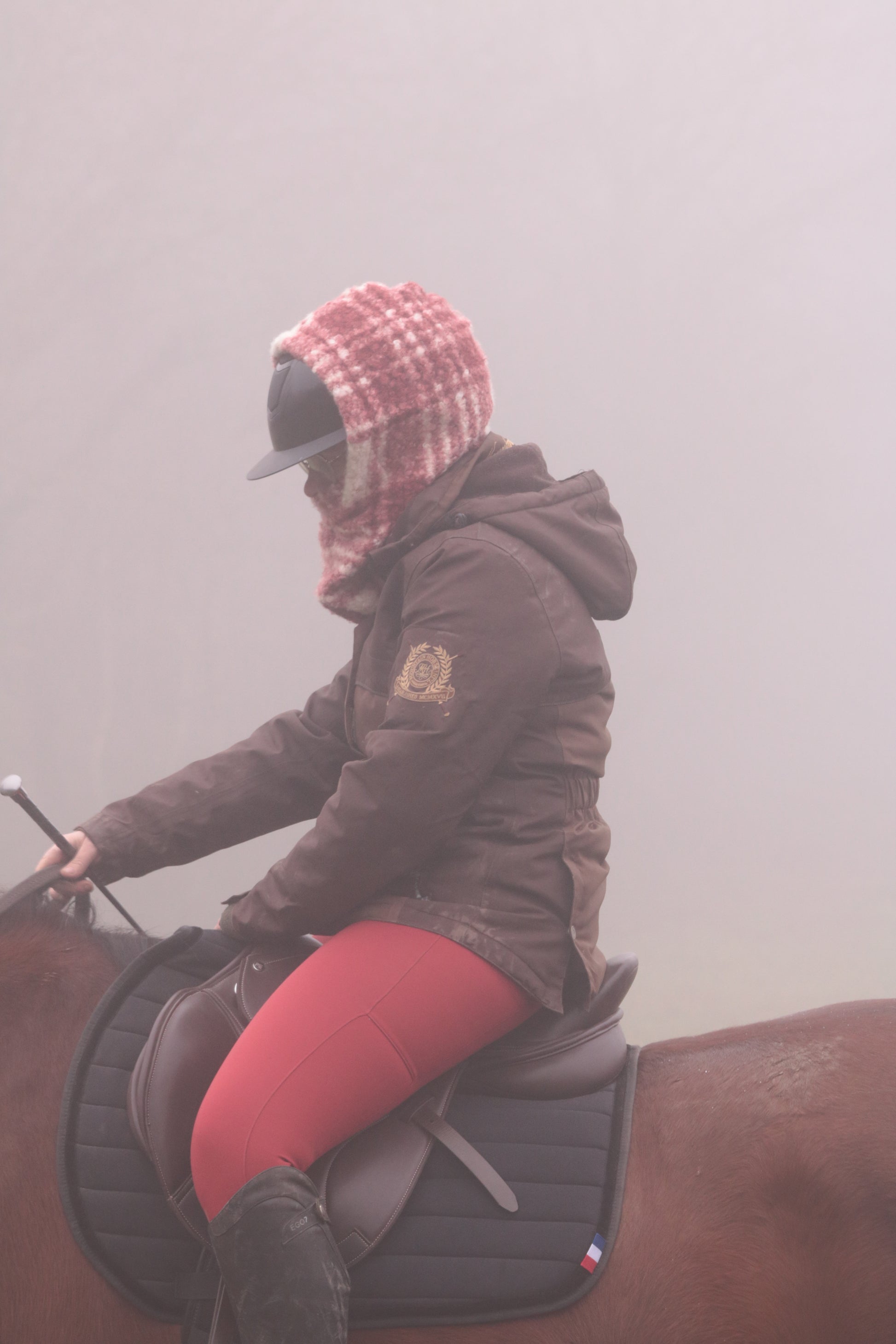 Je vous ai concocté une petite capuche d'équitation chaude en sherpa qui passe par dessus le casque, pour pouvoir rester au chaud et en sécurité en toutes circonstances.
